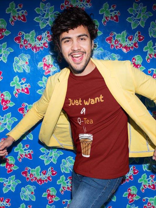SCUBAAA Men's Just Want A Q-Tea Half Sleeve T-Shirt